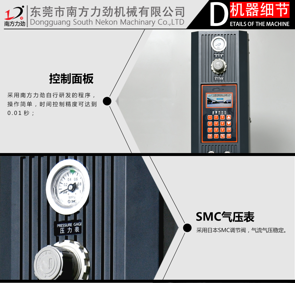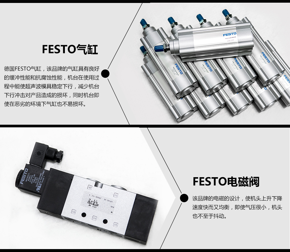 1.本機采用NTK換能器,FESTO氣缸,SMC調壓閥;