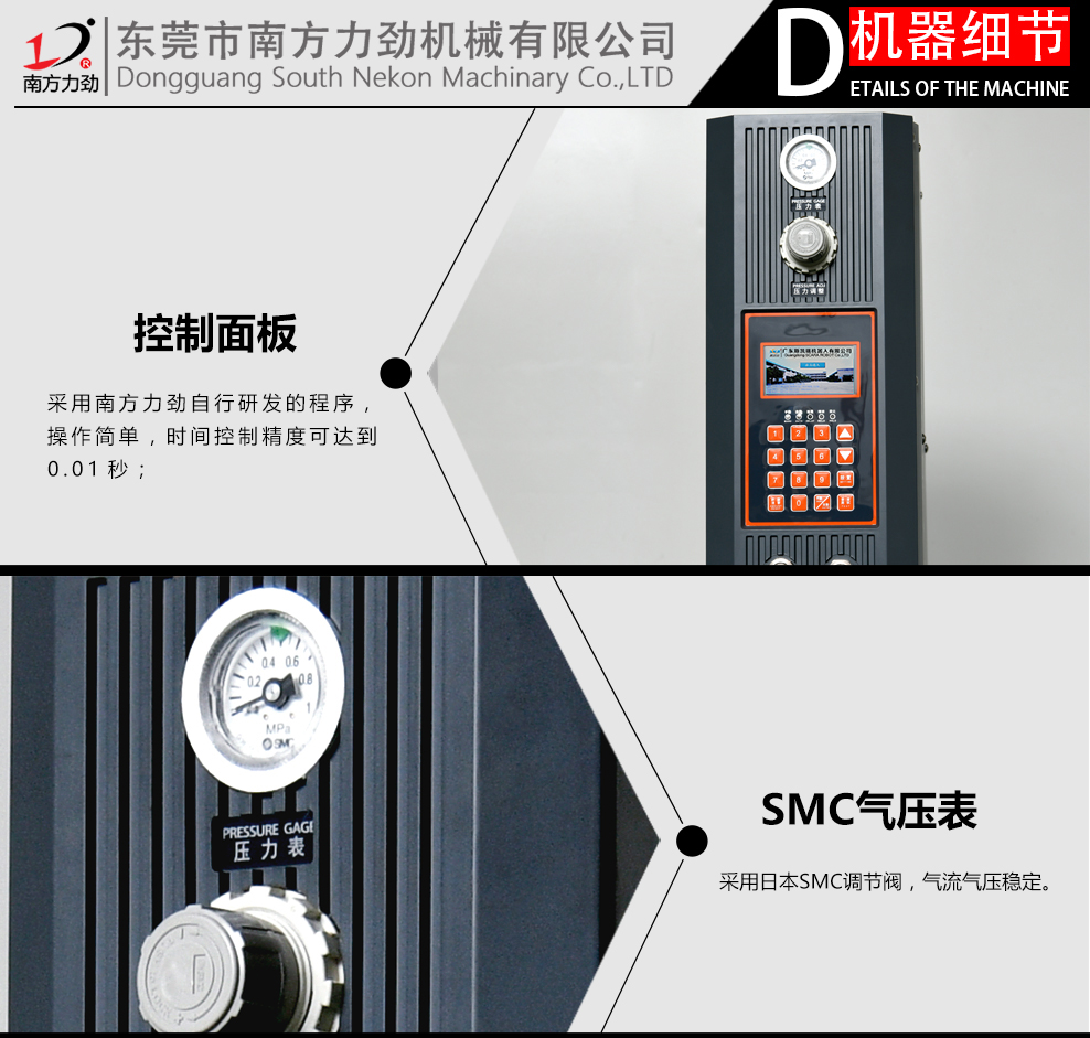 1.本機采用NTK換能器,FESTO氣缸,SMC調壓閥;